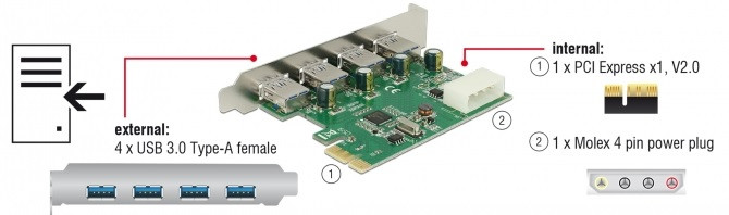USB 3.0 kártya PCIe 4 port Delock 89363